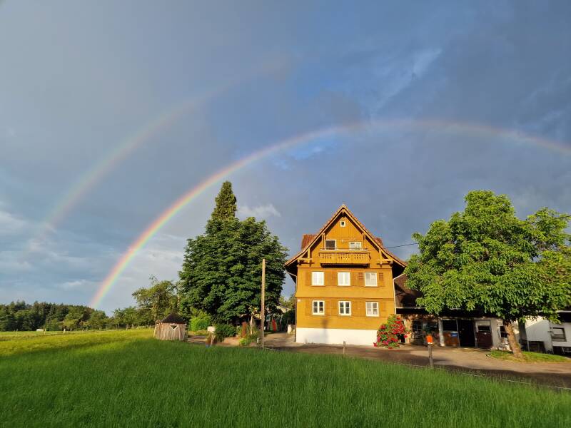 Auf unserem Ferienhof in Mollenberg bieten wir Ihnen zwei gemütliche Wohnungen zur Miete in einer ruhigen und malerischen Umgebung. Genießen Sie den Ausblick auf die Berge und die Nähe zum Bodensee. Ideal für Familienurlaube oder einen erholsamen Rückzugsort. Entdecken Sie die Schönheit der Natur und das charmante Ambiente unseres Hofes. Wir freuen uns darauf, Sie bei uns willkommen zu heißen.
